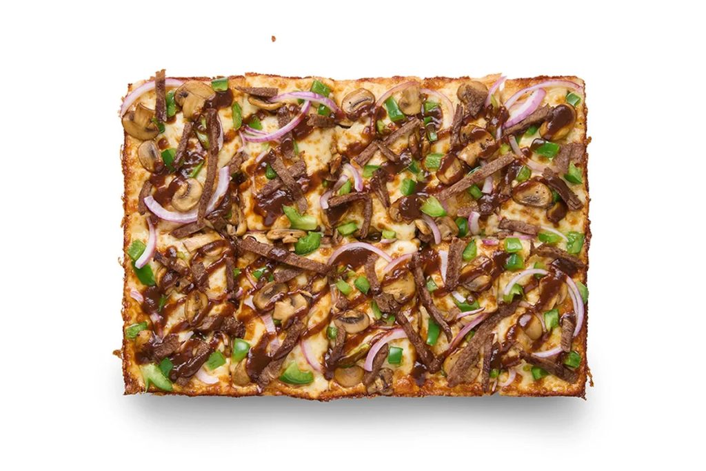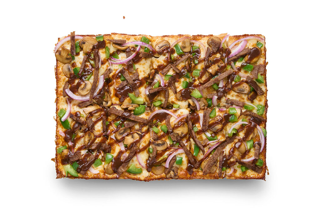 Sliced Steak, Mushrooms, Green Peppers, Onions, Cheese, and A-1 Sauce