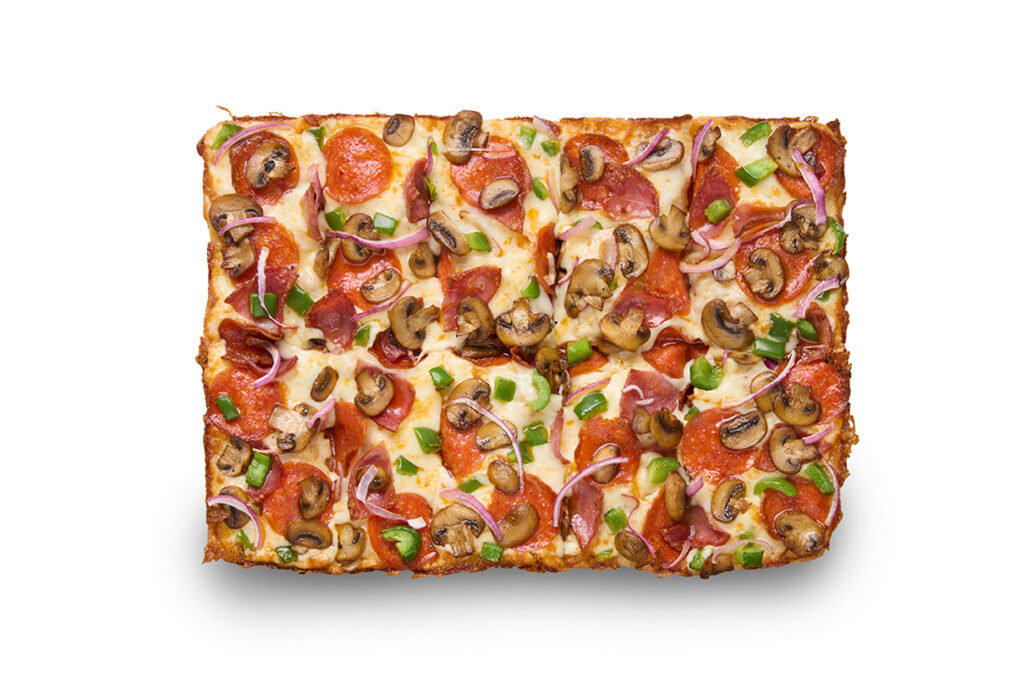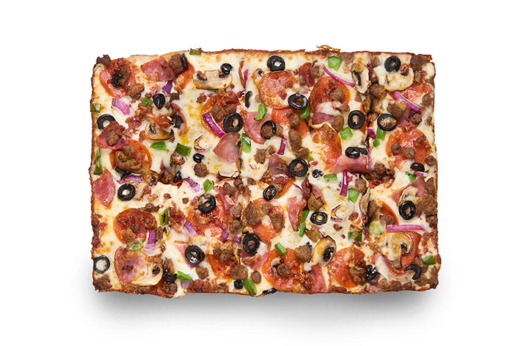Pepperoni, Ham, Bacon, Italian Sausage, Hamburger, Black Olives, Onions, Mushrooms, and Green Peppers